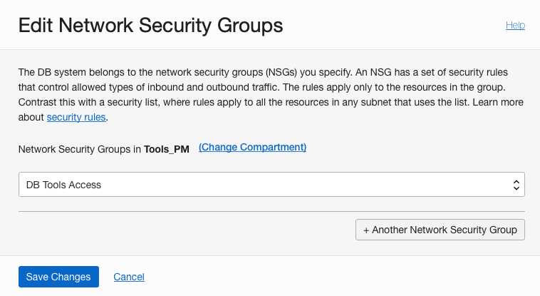 We can start by adding a Network Security Group to the DB VM instance, allowing us to add specific firewall rules to the VNIC of the DB System so we can restrict traffic. Network Security Groups offer a more granular level of security than Subnet level Security Lists.