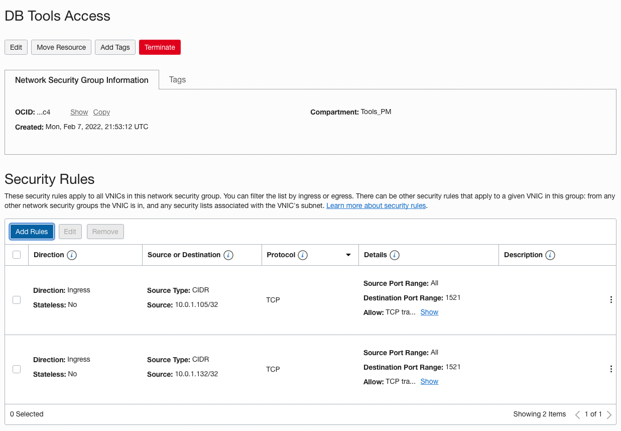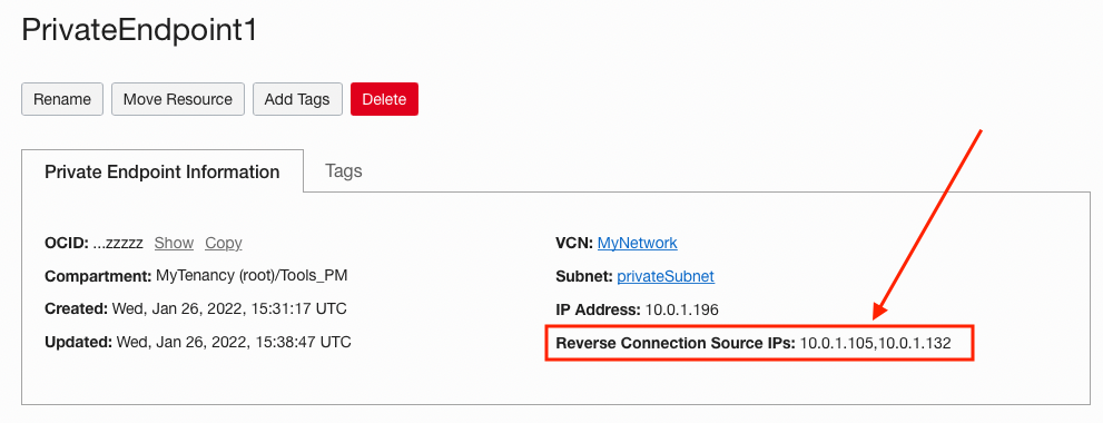 Here we want to take note of the two Reverse Connection Source IPs. Once we have those, we can add these IP addresses to the NSG with access over port 1521: