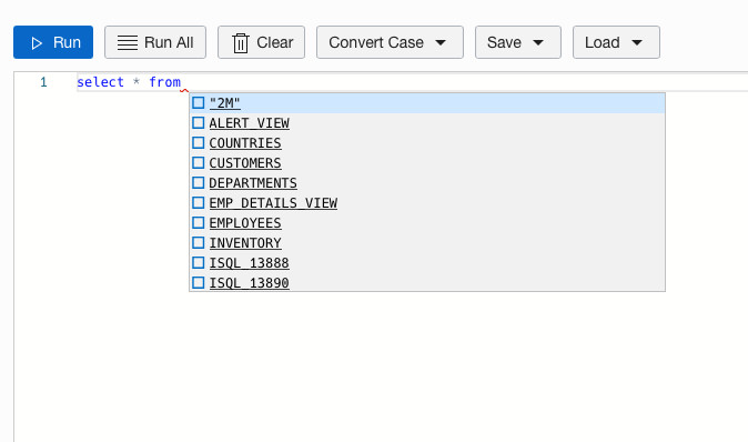 The SQL Worksheet also has some tricks such as code insight similar to SQL Developer