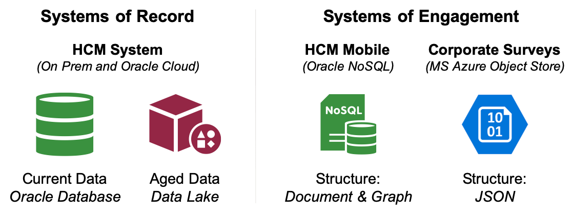 The HCM mobile social and interaction data may reveal the extent of employee engagement with one another. That data is captured in a NoSQL database.