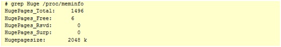 如下图,HugePage一共分配了1496个页面,其中有6个页面为Free,那么使用了1490个页面,每个页面为2048K.