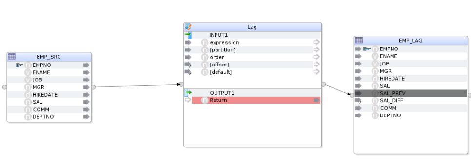 Below is an example of using the Lag transformation to load data into an Oracle table.