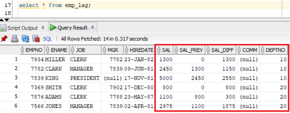 LAG(EMP_SRC.SAL,1,0) OVER (PARTITION BY EMP_SRC.DEPTNO ORDER BY EMP_SRC.SAL)