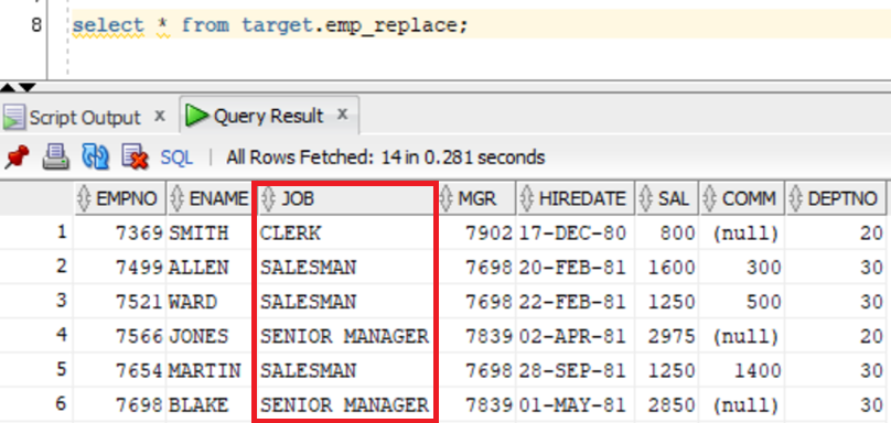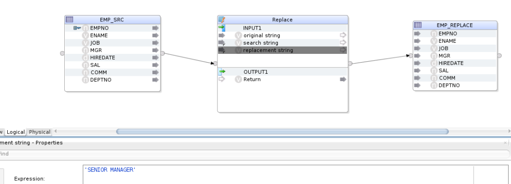 REPLACE(EMP_SRC.JOB,’MANAGER’,’SENIOR MANAGER’)