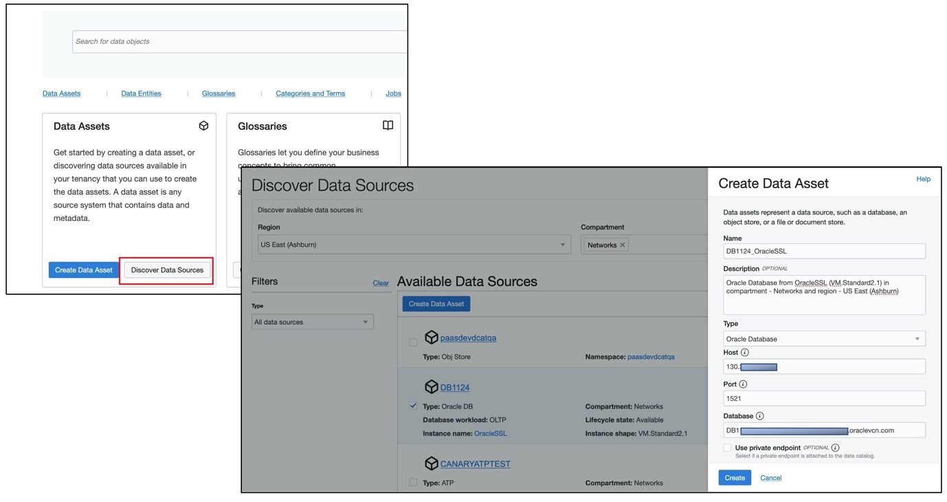 OCI Data Catalog now allows for the system to automatically discover the data sources available in your tenancy. Choose the region and compartments and leave the rest to the system. You can discover Autonomous Data Warehouse databases, Autonomous Transaction Processing databases, Oracle database, Object Storage buckets, and so on. The system even brings in the configurations, so that information is prepopulated for you to create data assets and corresponding connections. Provide the remaining information like user credentials and harvest.