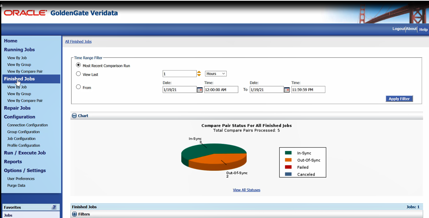 Finally, the 5th C – Correct the out-of-sync jobs by using the Repair Jobs functionality. Oracle GoldenGate Veridata also provides the Generate SQL functionality (specific to Oracle), which generates SQL files for the source and target tables associated with the out-of-sync jobs.