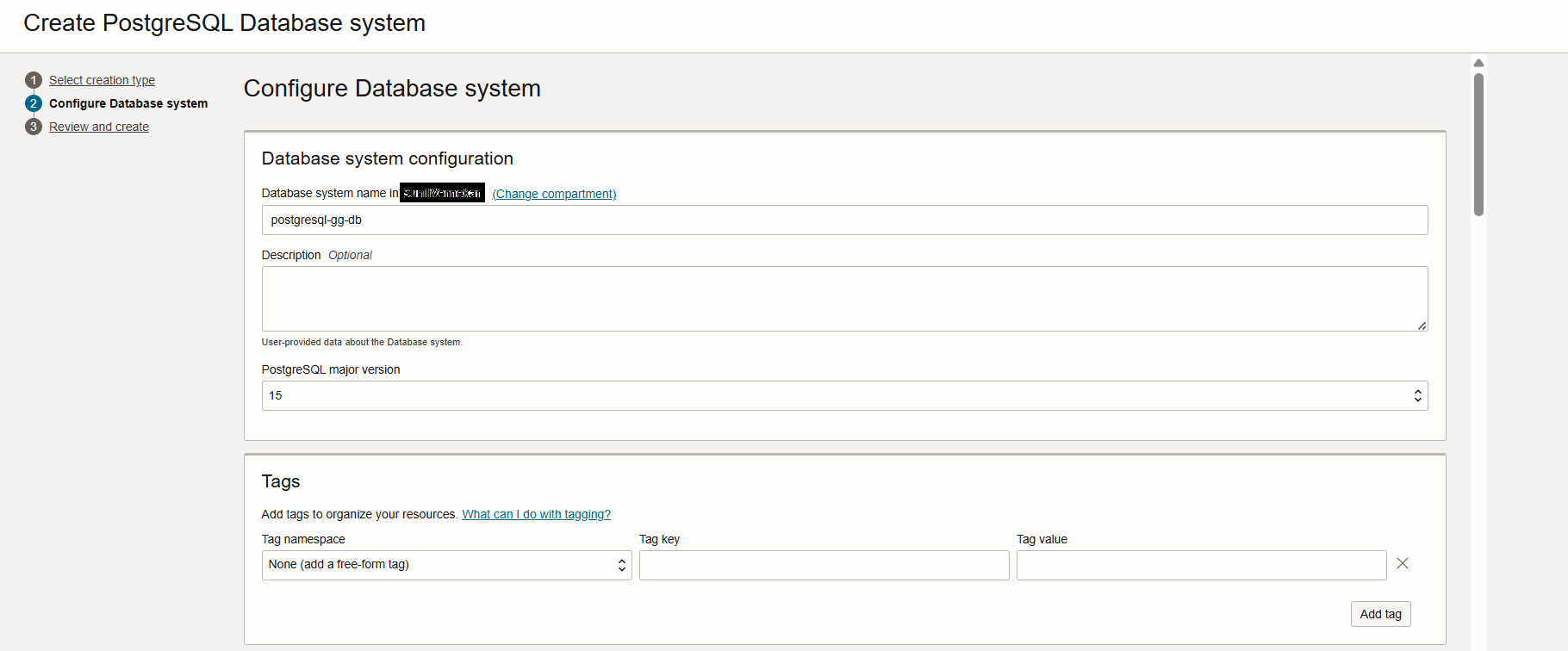 Once we have the configuration ready next, we can create the PostgreSQL Database on OCI.