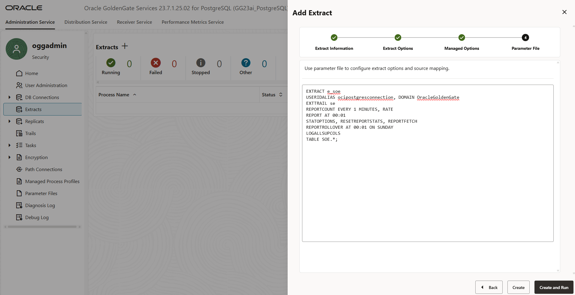 - Step 4: Create a GoldenGate Extract to capture changes from the OCI PostgreSQL database.