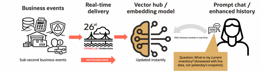GoldenGate 26ai AI Service brings embedding generation and enrichment into the real-time flow.