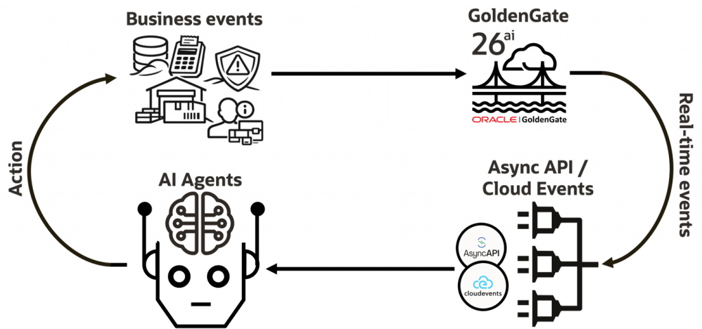 Oracle GoldenGate’s role: turn distributed operational change into agent-ready business events