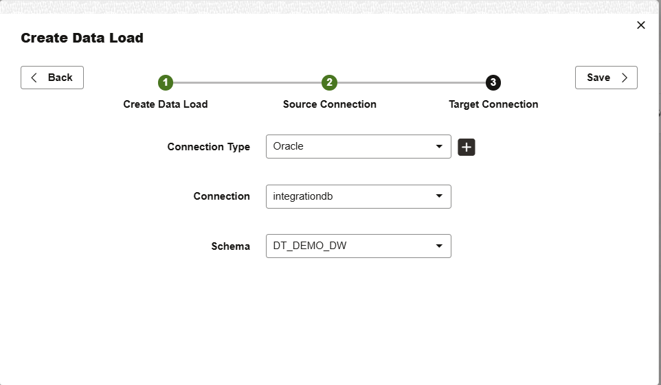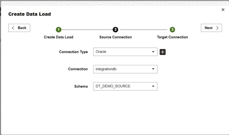 For the first time, it will ask you to add a schema from your connections that will be used to get source or target tables. At any time more schemas can be added to the data flow as needed.