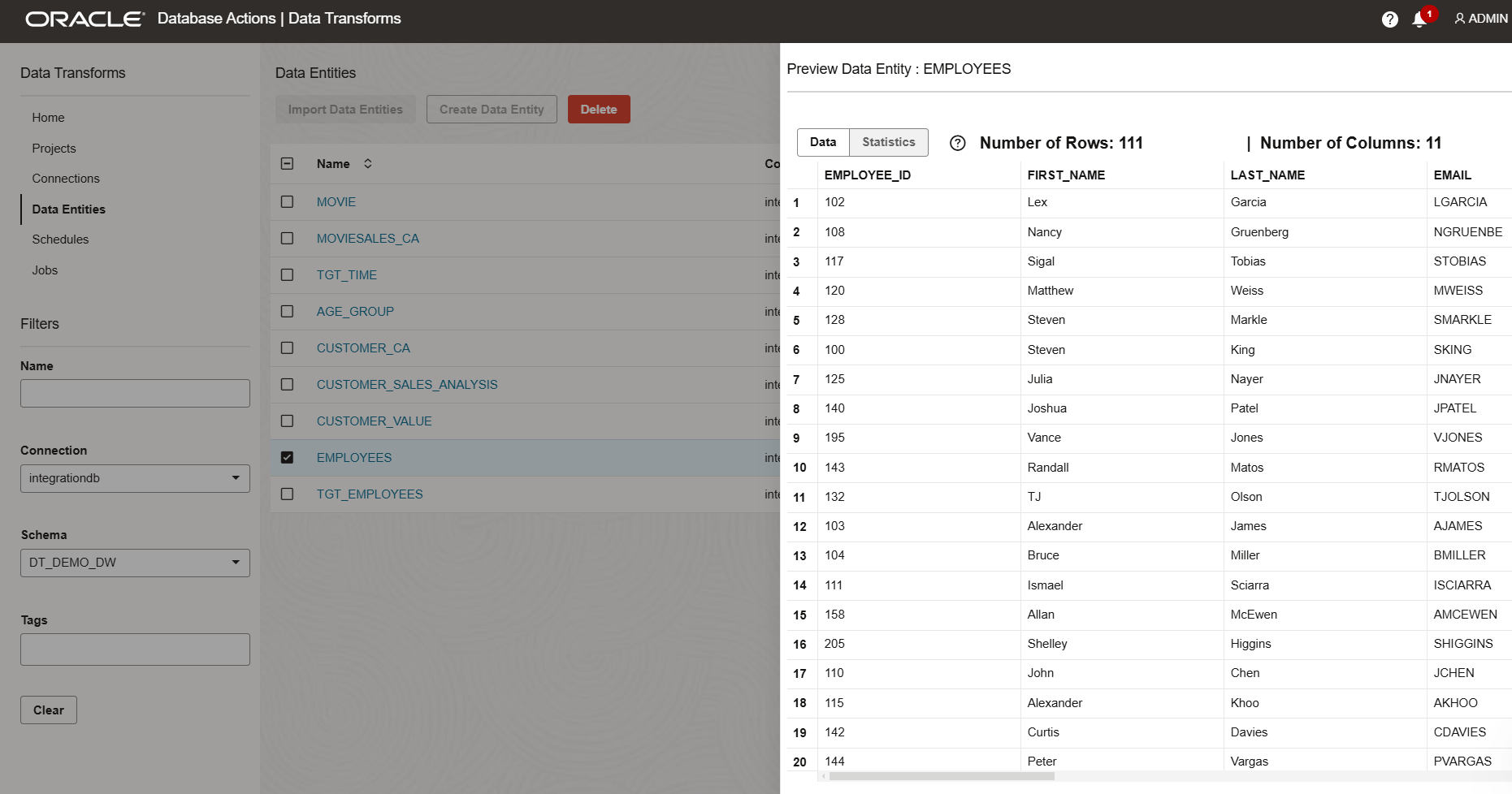 Oracle Data Transforms offers an intuitive, graphical interface that simplifies data integration for Oracle Autonomous Database users. With this tool, users can visually design and manage data transformations, eliminating the need for complex coding. This functionality accelerates data integration, ensuring a seamless user experience.
