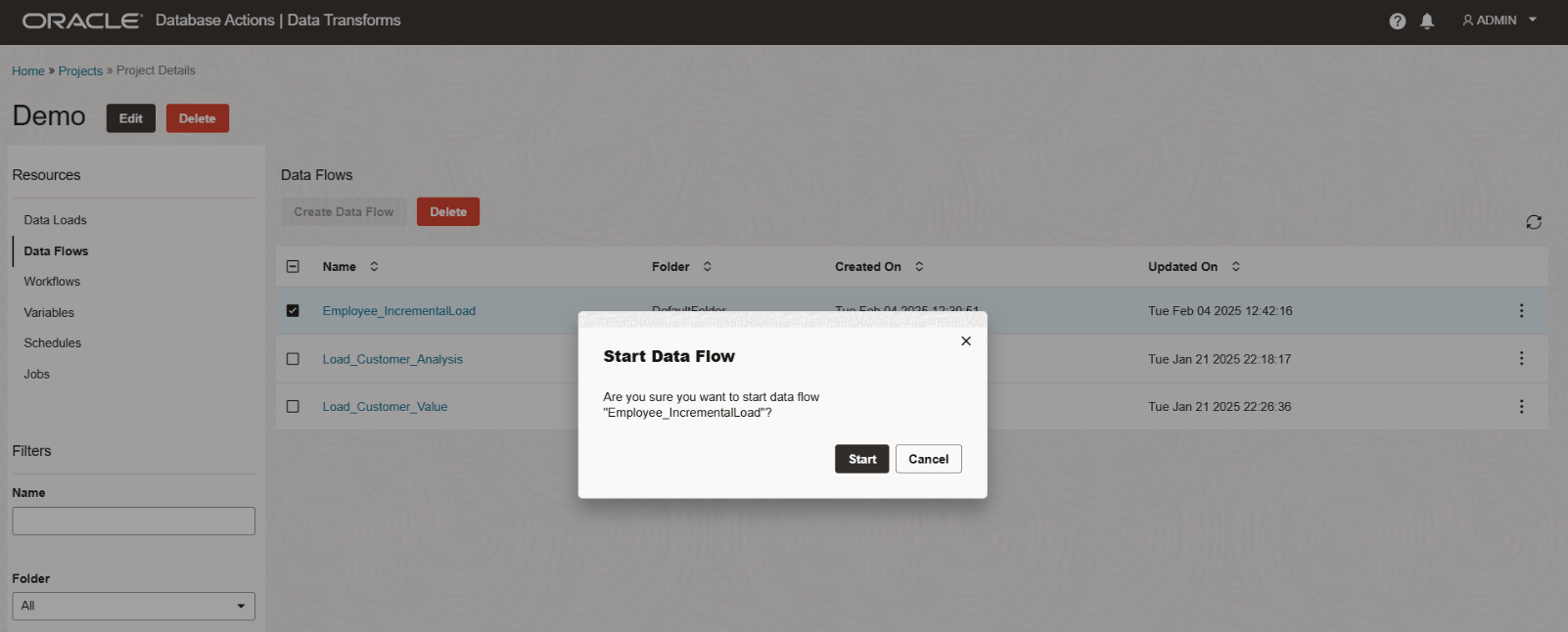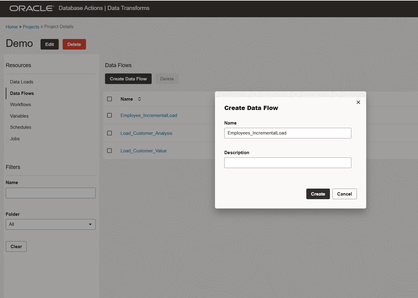 Navigate to your project DEMO and select Data Flow from the left-side menu then Click Create Data Flow.