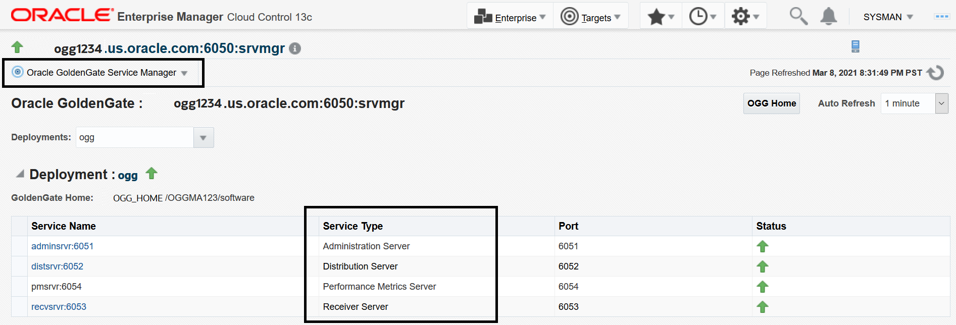 Another key feature in this release is that the Oracle GoldenGate Marketplace MA Instance is monitored using Enterprise Manager Marketplace Instance where Oracle GoldenGate Enterprise Manager Plug-In has been installed and configured on the Enterprise Manager Marketplace Instance.