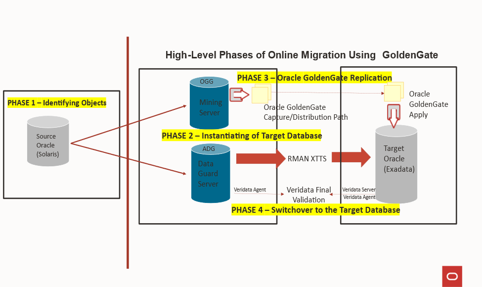 This post will explore the high-level phases of an online migration using Oracle GoldenGate, outline best practices for ensuring data integrity, and introduce key Oracle GoldenGate features that enhance the migration process: Microservices Architecture and Oracle Veridata.