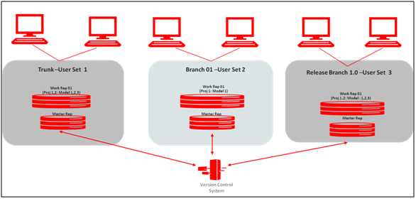 3 is working on a release branch and fixing bugs on the release code line. Each of these user set work in parallel and