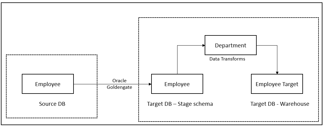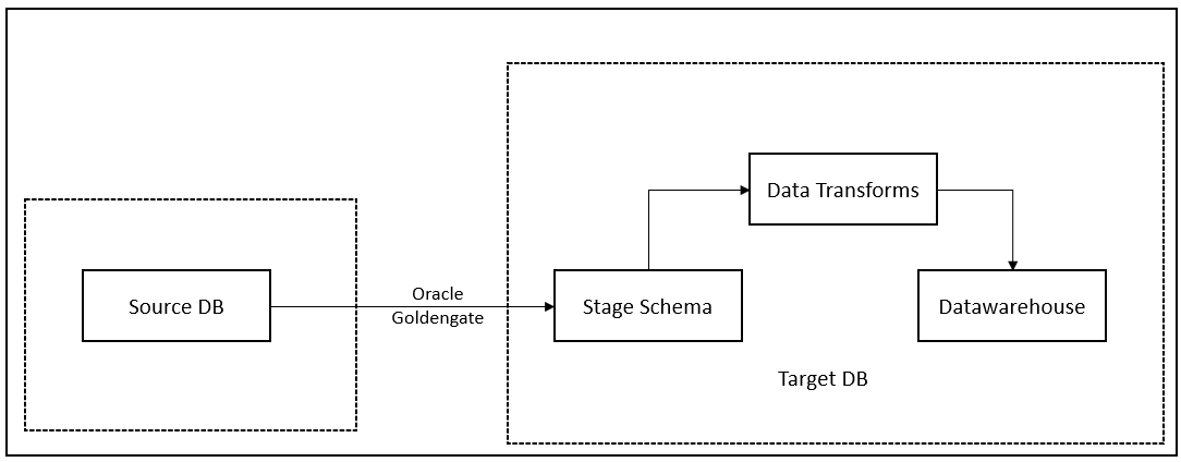 The data from source database can be extracted using Oracle Goldengate and it is loaded into a stage schema in the target database. Oracle Goldengate also adds the last modified date field to the stage table which will be used in data transforms to capture the incremental loads.
