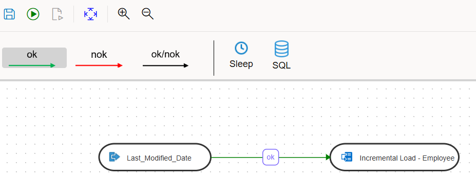 The max date to last modified date is captured using the variables in Data transforms and it is used to get the changed records from the employee table. This data is then combined with department table and loaded into the employee_target table.