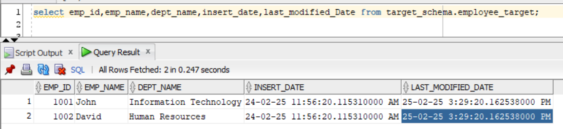 Last modified date: select max(LAST_MODIFIED_DATE) from target.employee_target