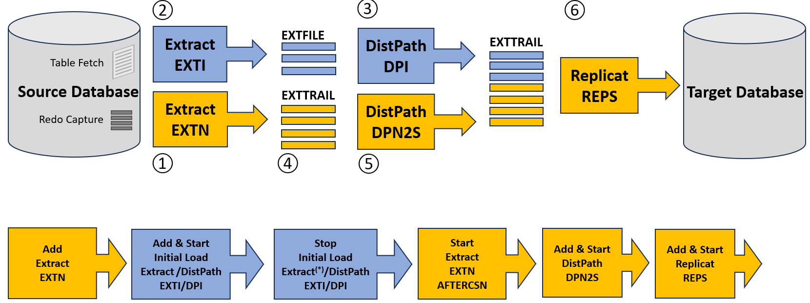 Finally, start the Replicat process to apply changes from the Trail File to the target database. From Replicat’s perspective, there is only one EXTTRAIL—even though it was initially populated by the Initial Load and subsequently updated with changes from continuous replication.