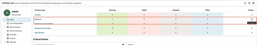 - In Home, click “Add Replicat”.