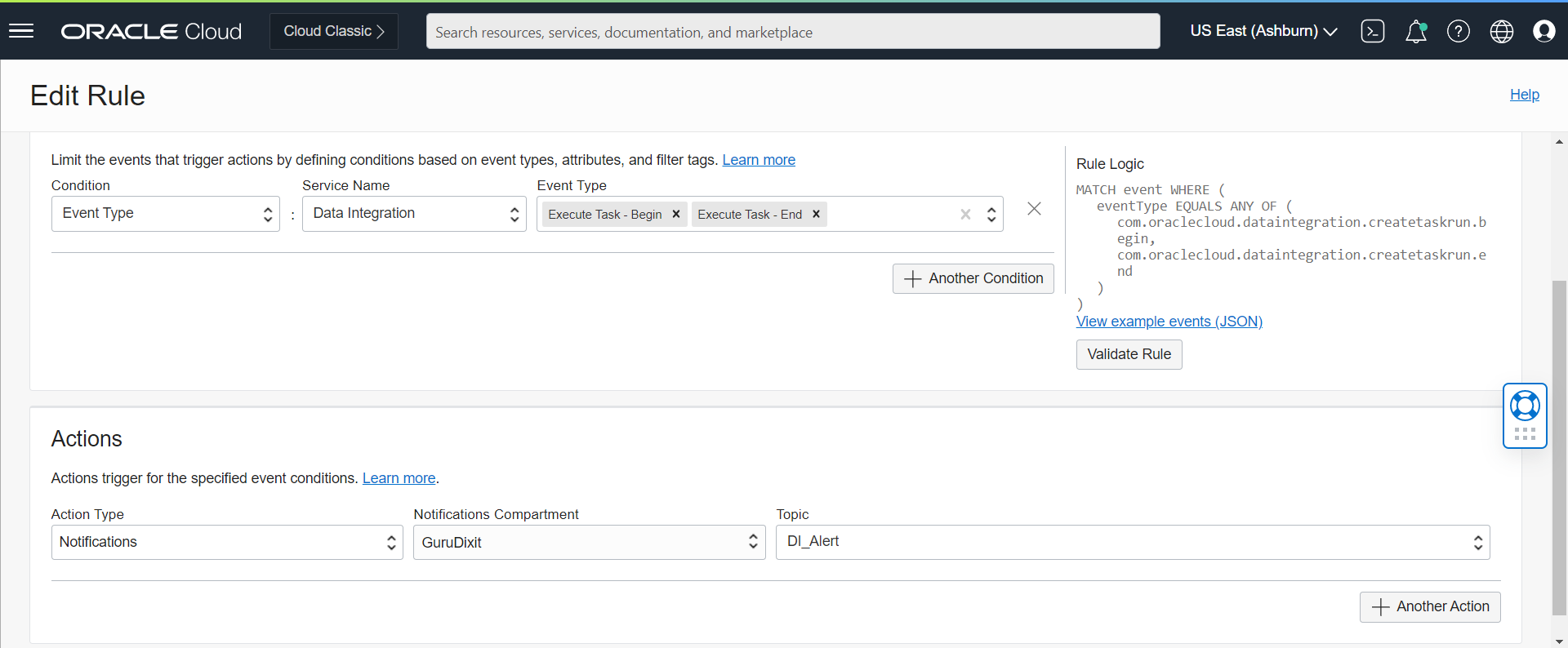 Let’s define an event that triggers an email notification when job status changes in OCI Data Integration