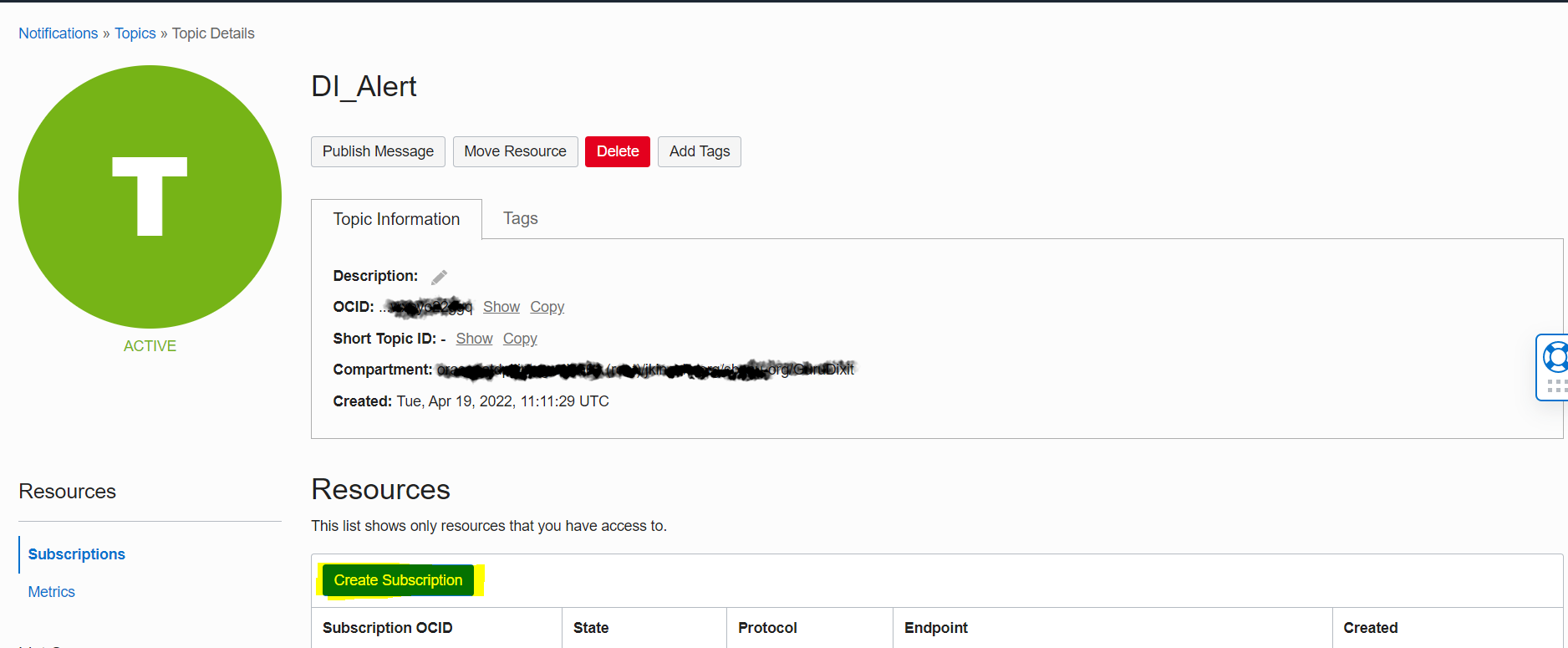 Switch back to OCI console window and verify the subscription status changed to Active. You may need to refresh your browser.