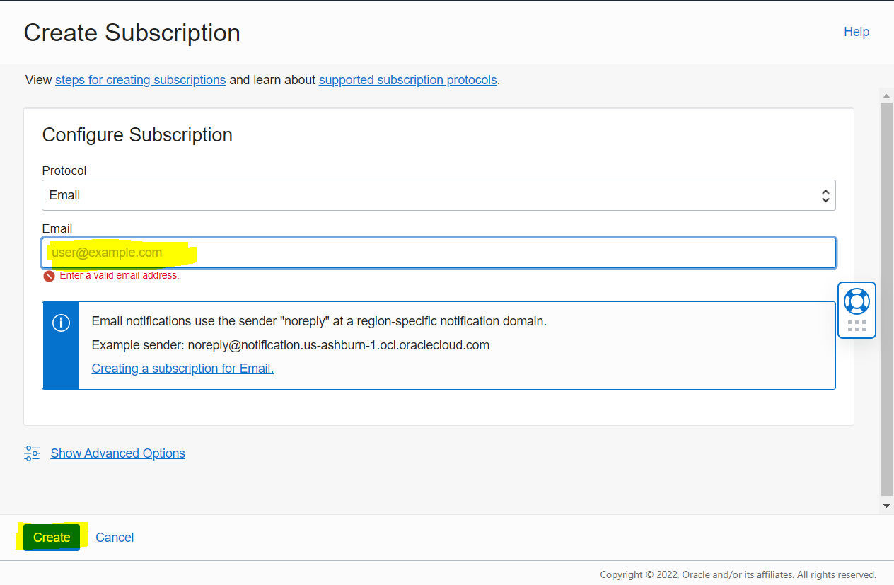 Now that you have created a notification topic, create a subscription to that topic, so that you can receive email alerts when a job status changes. (You will create a rule with conditions in a following task.)