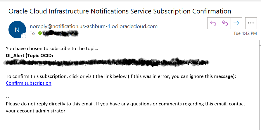 A browser tab will open, confirming that you have subscribed your email account to the topic:DI_Alert