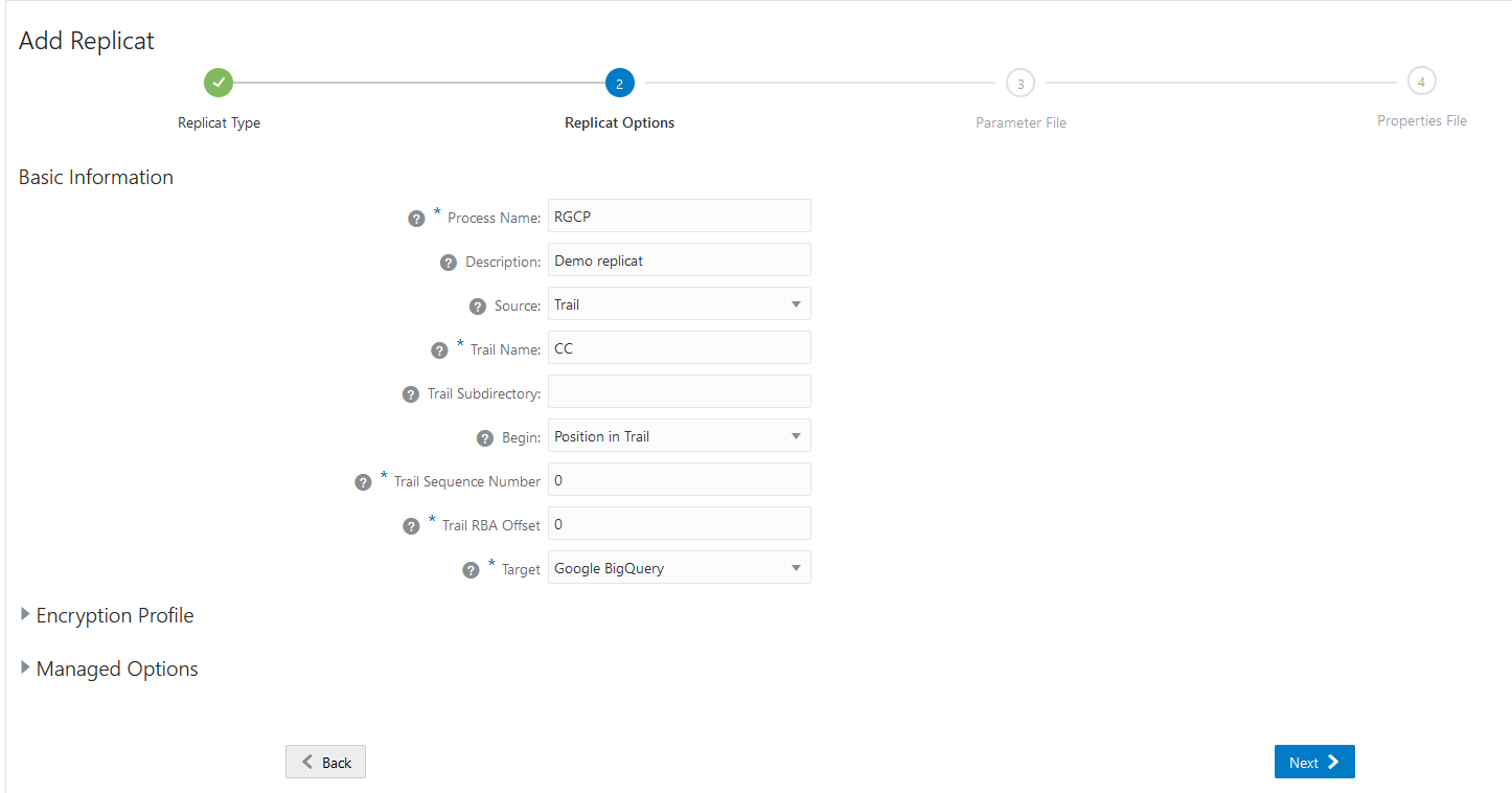 In this post we will show how to install and configure Oracle GoldenGate for Big Data in order to be able to receive trail files from a GoldenGate for Oracle classic architecture. Once the trail files will arrive on the machine hosting Oracle GoldenGate for Big Data we will show how to configure BigQuery handler and how to create a replication process that writes the transactions in real time from an Oracle Database to a Google BigQuery platform. There is yet another API for streaming ingestion, i.e BigQuery Job REST API, but for now we will test the BigQuery Streaming API. In the second part of this blog we will also show the “Stage and Merge” functionality that uses the aforemoentioned API.