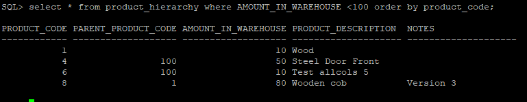 update product_hierarchy set PRODUCT_DESCRIPTION=’Test allcols 3′ where PRODUCT_CODE=6;