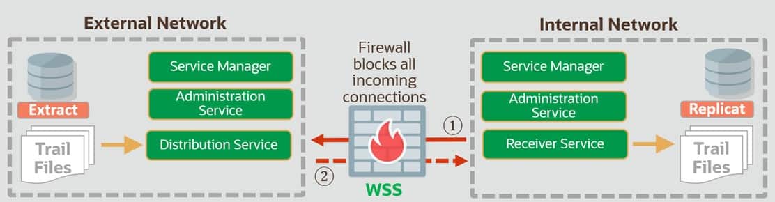 With Oracle GoldenGate, you can set up a Replication Path to route trail files from a less-trusted source system to a trusted target environment. Unlike a standard Distribution Path—which is initiated and controlled from the source—this model allows the trail-file transfer to be initiated and managed from the trusted target side.
