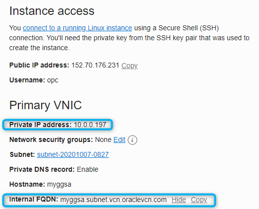 This registration has some particularities. We must provide the FQDN and private IP as listed in the compute details of GGSA.