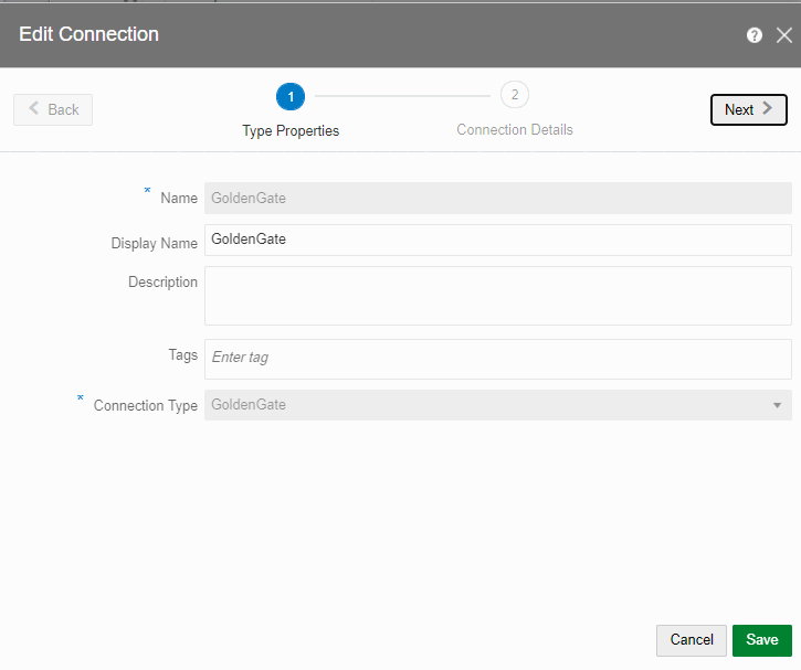 Log in to GGSA and go to Catalog. Create New Item → Connection → GoldenGate: