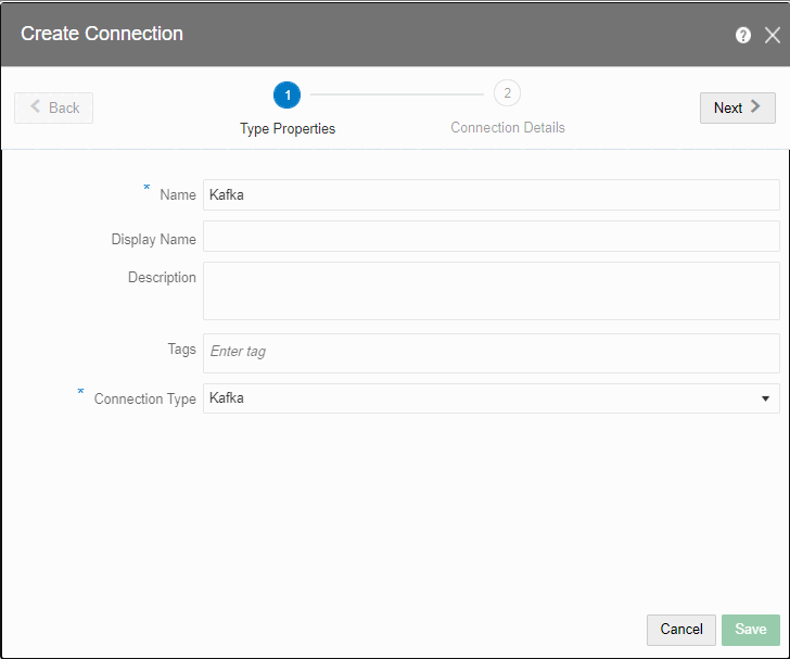 Now, create a connection for Kafka. In this example, we are using Kafka with SSL enabled. For Kafka without SSL, use port 9092 and don’t select any checkbox on security type: