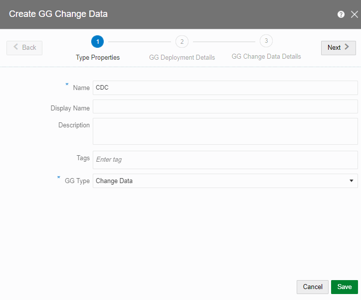 At this point, the only step missing is to create the Change Data Capture (CDC). For OCI GoldenGate, you need to copy and paste the deployment name in the Deployments field. Even so, it doesn’t show up after you paste it. It will be saved.
