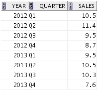 unpivot_test values (2012, 10.5, 11.4, 9.5, 8.7);