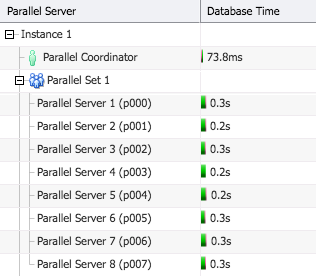 If we look at the Parallel tab we now see that all consumer PX servers perform similar amount of work as opposed to some of them staying idle in 11g.