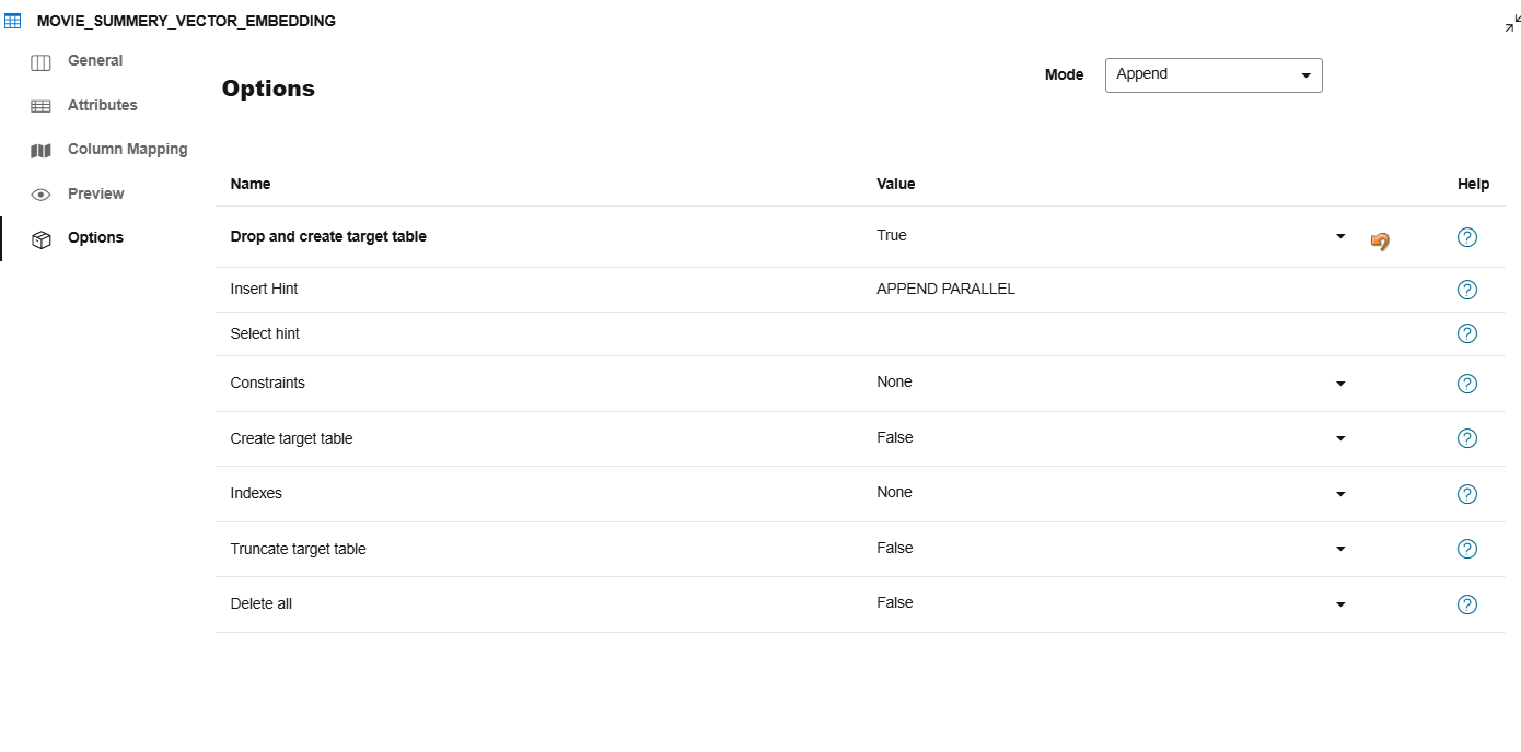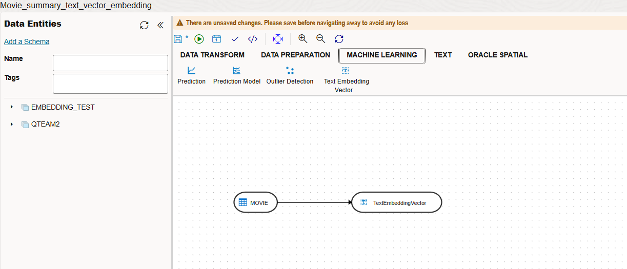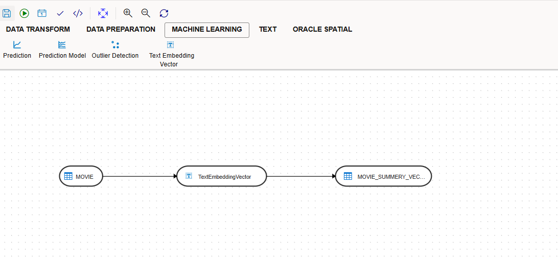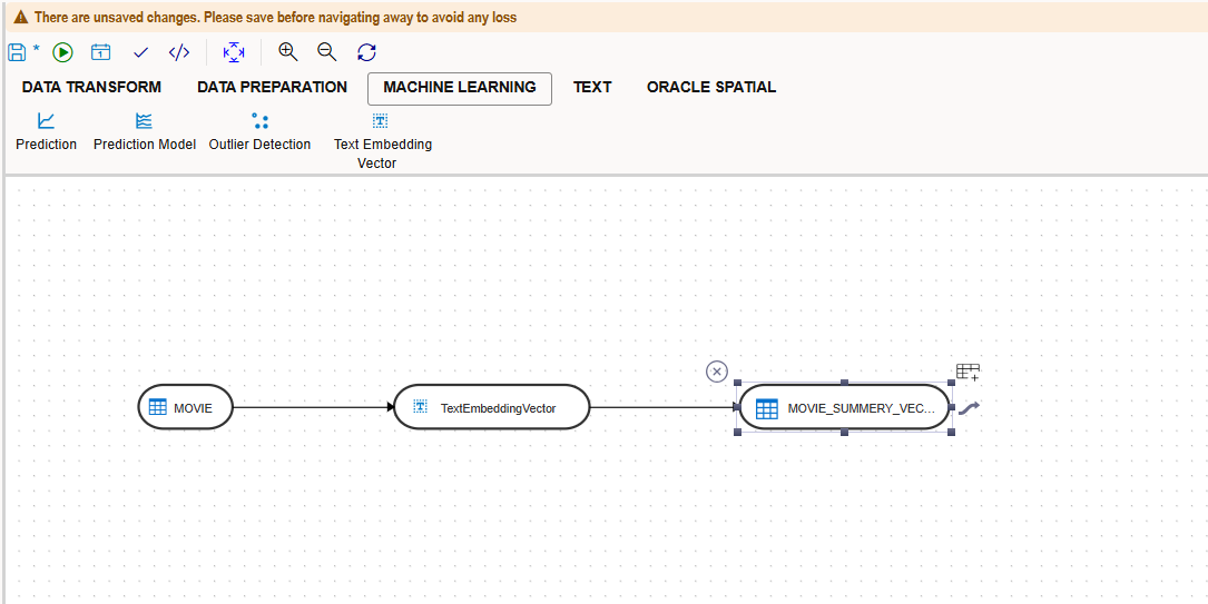 Now, as a last step, drag the target table MOVIE_SUMMARY_VECTOR_EMBEDDING on the canvas and join it to the embedding step.