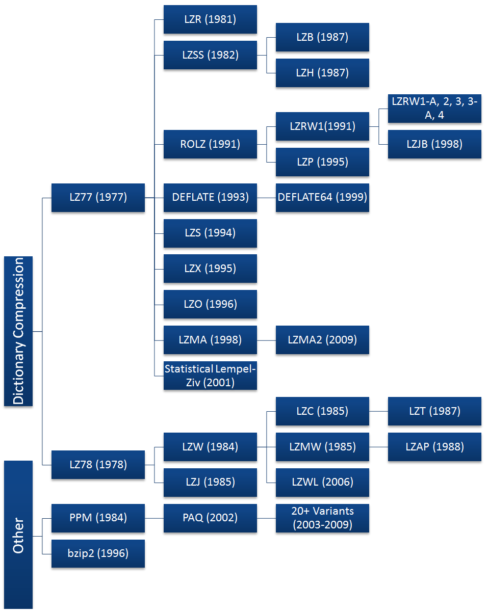 This picture shows us that most of the algorithms based on LZ77 and LZ78 (both of them are dictionary algorithms). Bzip2 has a bit different approach. Let’s have a look on the some basis concepts (let’s say building blocks) which are used for creating concrete compression algorithm.