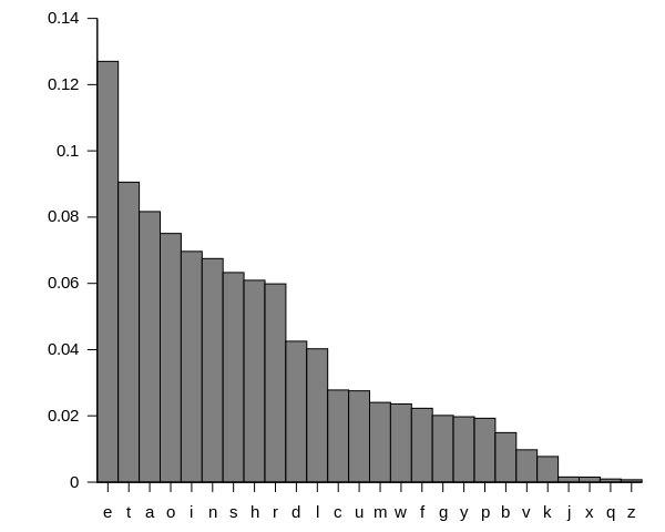 encoding alphabet is to assign some equal number of the bits for each symbol, which enough for definite encoding. But even in general case when English text are encoding, frequency occurrence of each symbol is not equal. I got from Wikipedia diagram frequency of occurrence of every English symbol: