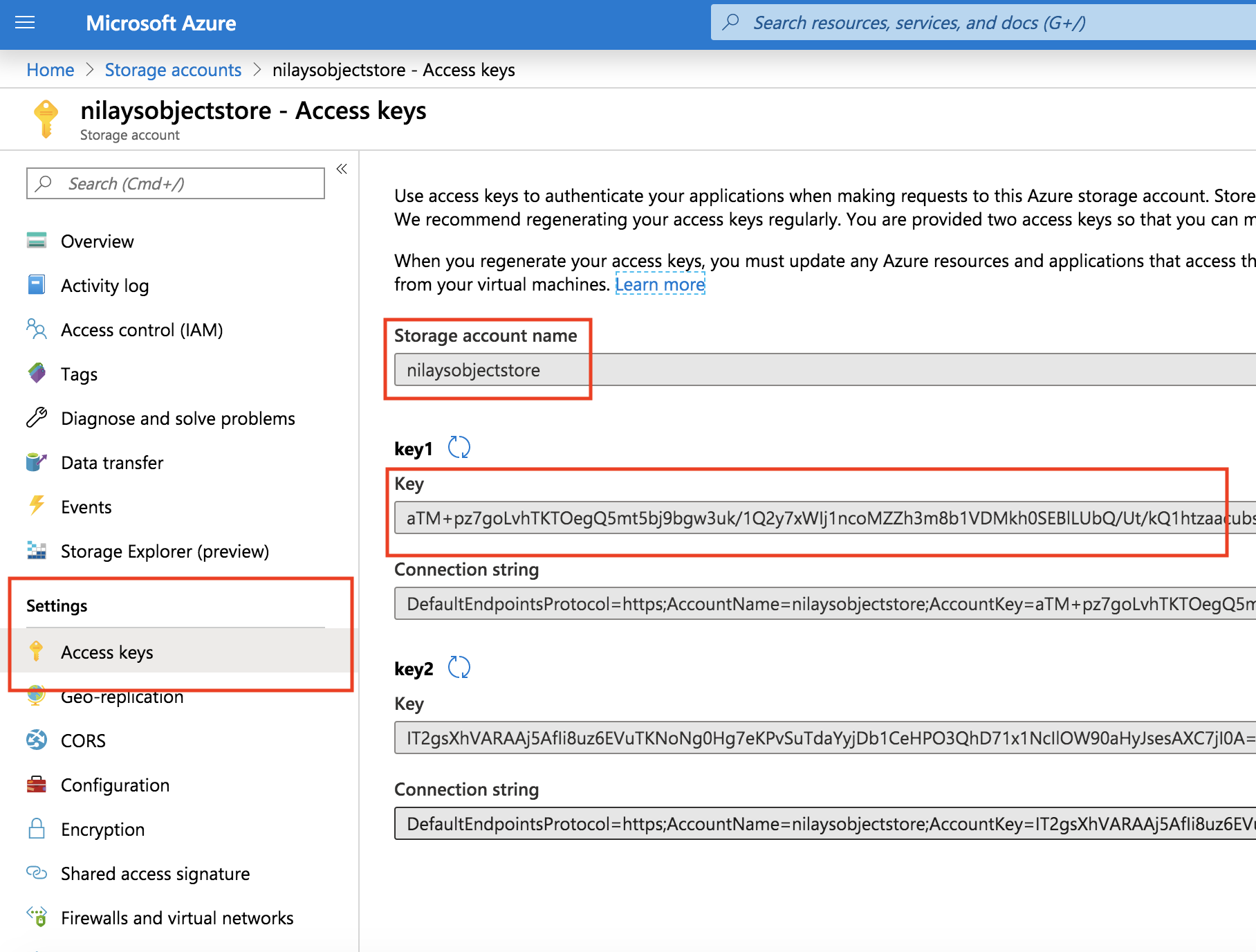 Note: If you are still unsure about how to find your Azure storage account access key, follow detailed steps here.