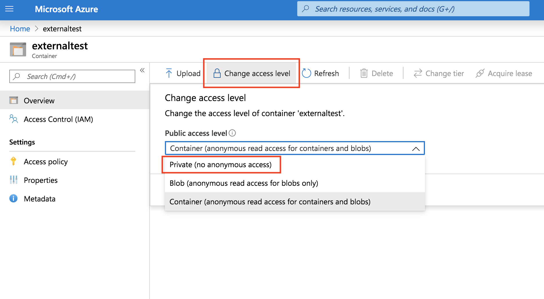 Keep note of the “Access Level” of your container (you can use a Private or Public container) in which you uploaded the files. This will come in handy in Step 3.