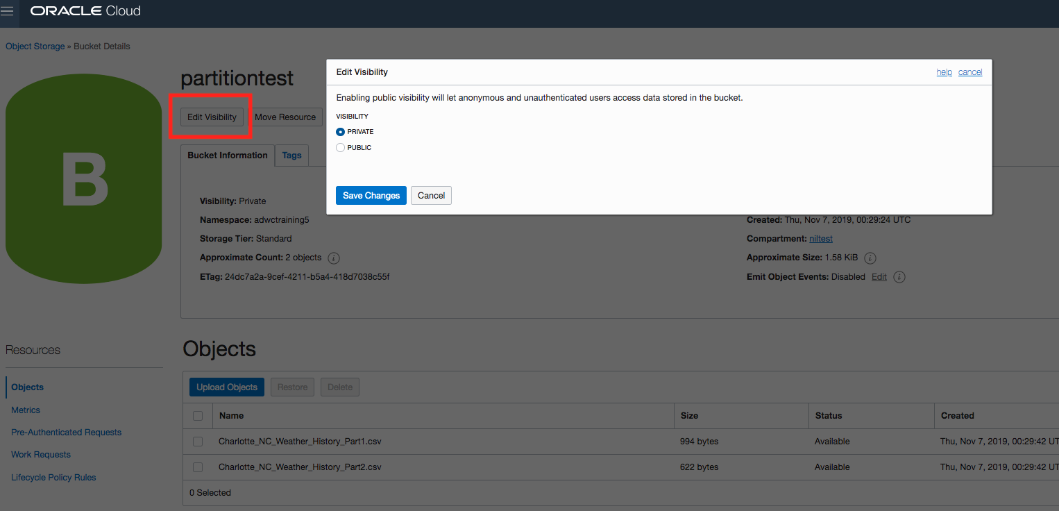 Create an Object Store bucket and unzip and upload the two Weather history files to your object store. You can refer to this hands-on lab for a detailed walkthrough of how to do this in your Oracle Cloud tenancy.