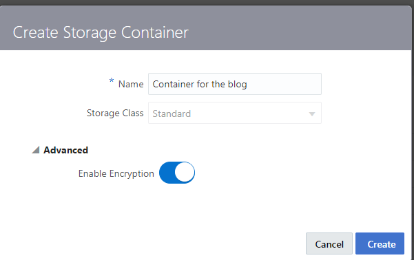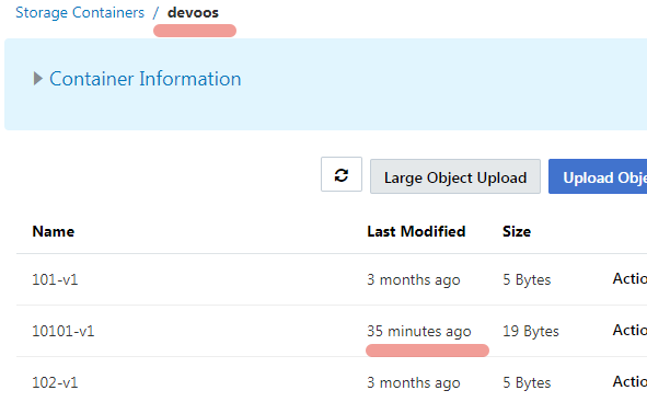 # Create container $ java -jar ftmcli.jar create-container container_for_blog Name: container_for_blog Object Count: 0 Bytes Used: 0 Storage Class: Standard Creation Date: Fri Mar 30 21:50:15 UTC 2018 Last Modified: Fri Mar 30 21:50:14 UTC 2018 Metadata --------------- x-container-write: a424392.storage.Storage_ReadWriteGroup x-container-read: a424392.storage.Storage_ReadOnlyGroup,a424392.storage.Storage_ReadWriteGroup content-type: text/plain;charset=utf-8 accept-ranges: bytes Custom Metadata --------------- x-container-meta-policy-georeplication: container