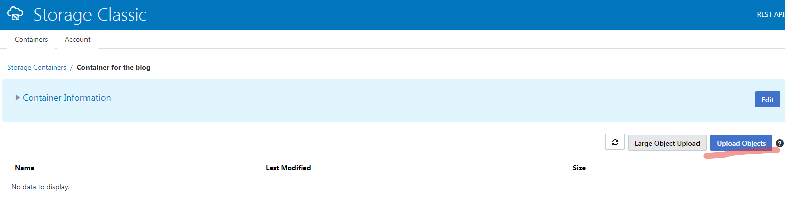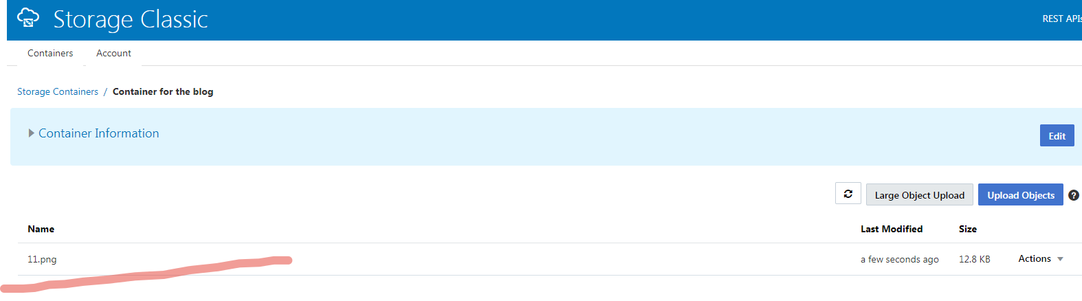 Let’s try to accomplish standart flow for OSS – create container, upload file there, list objects in container,describe container properties and delete it.