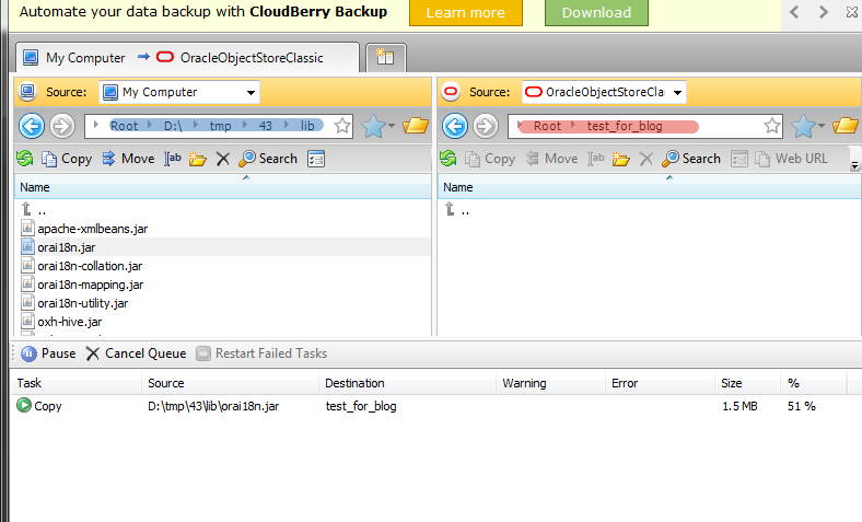 It’s nothing to add here, CloudBerry is convinient tool for browsing Object Stores and do a small copies between local machine and OSS. For me personally, it looks like TotalCommander for a OSS.