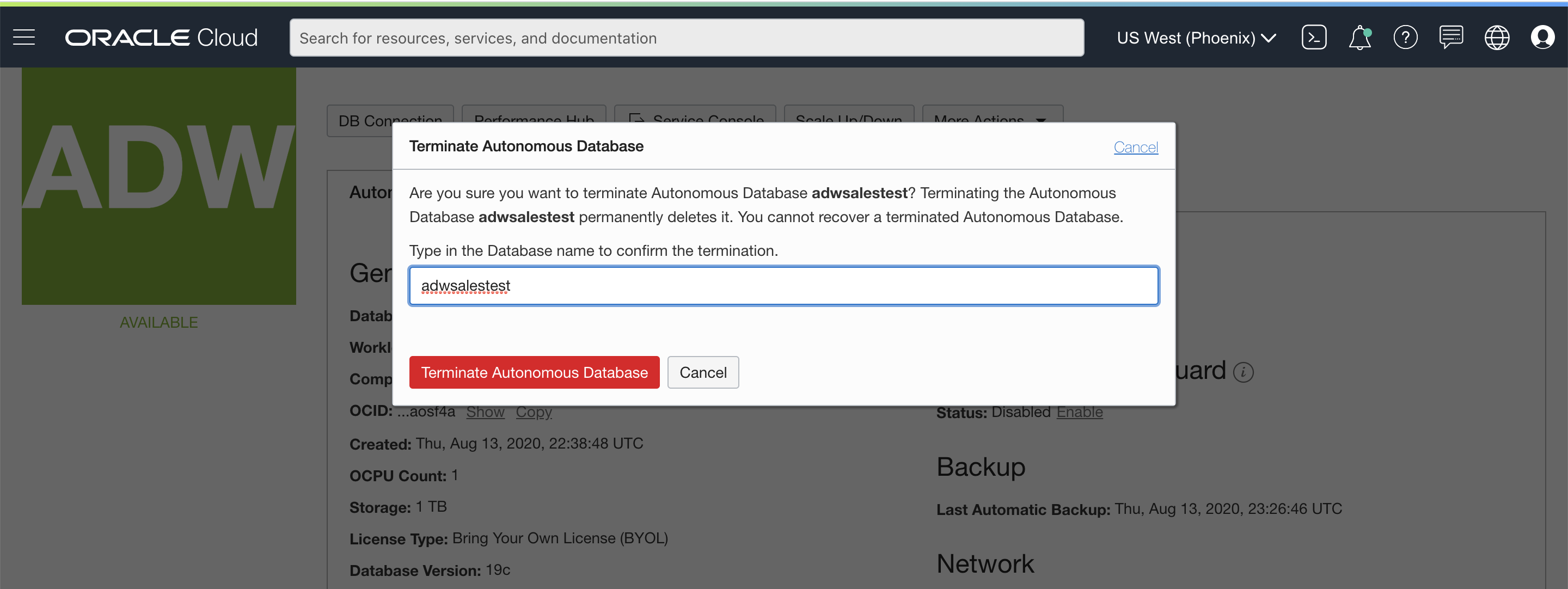 After verifying our new clone has been successfully created, we can terminateadwsalestest: