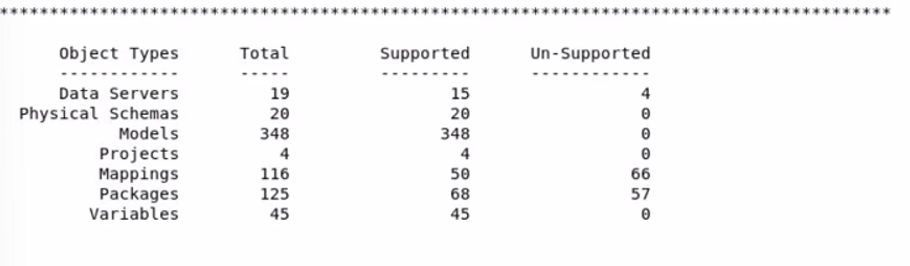 The utility has a scanner to assess how much automatic migration is possible. The utility is installed on ODI server, and a feasibility report is produced by connecting to the existing ODI.