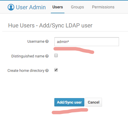 Authenticate Hue with LDAP and Search Bind or Authenticate Hue with LDAP and Direct Bind. It’s really not too hard. Potentially, you may need to define your base_dn and here is the good article about how to do this. Next you may need the bind user for make the first connection and import all other users (here is the explanation from Cloudera Manager: Distinguished name of the user to bind as. This is used to connect to LDAP/AD for searching user and group information. This may be left blank if the LDAP server supports anonymous binds.). For this purposes I used my AD account afilanov.